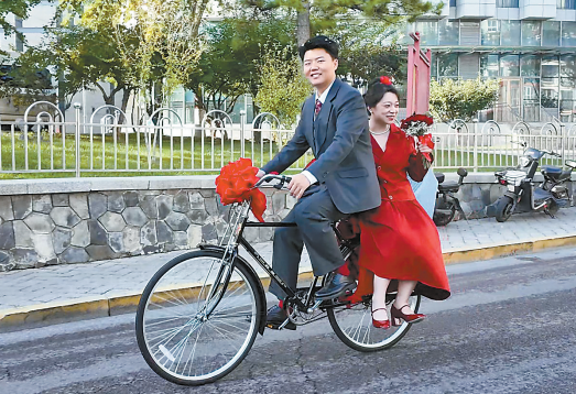10月1日,三河市的一对新人别出心裁,以一辆复古的“二八大杠”自行车作为接亲婚车,把上世纪的浪漫搬进当下,让“返璞归真”成了最动人的婚俗新风。