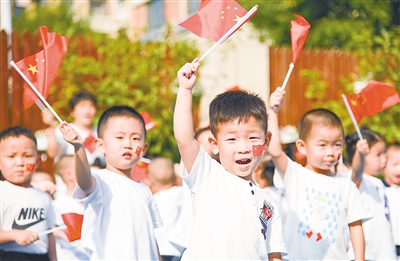 为庆祝中华人民共和国成立70周年,营造浓厚的国庆节氛围,9月30日上午,安次二幼联合解放军某部队,在30名家长代表的参与下举行了简短而隆重的“升国旗、唱红歌”快闪活动,以此来表达对祖国的爱,向国旗敬礼,向祖国致敬!