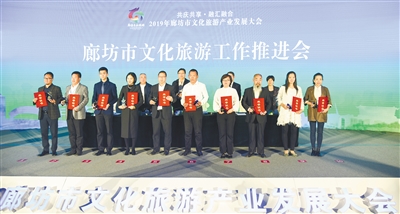 会上,冯韶慧等市领导为2019年廊坊市文旅工作先进单位代表颁奖。 记者 刘向 摄