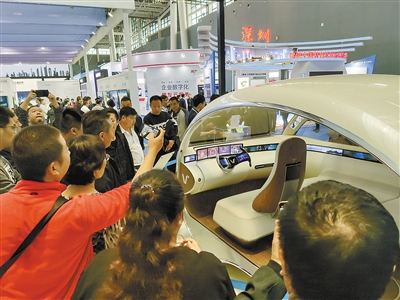 数字经济博览会开展首日,固安维信诺AMOLED柔性屏概念车吸引大批观众前来咨询、拍照,赢得广泛关注和好评。 记者 刘向 摄