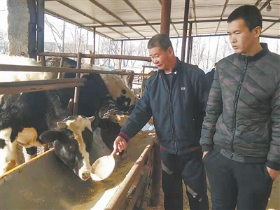 图为陈少宾(左)带着陈谦养牛。记者 陈正 张旭青 通讯员 王梓任 摄