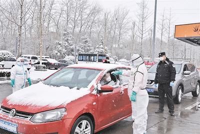 “同志,请接受体温检查。”2月2日清晨,记者在京沪高速廊坊口检查站进京方向健康筛查站看到,在纷纷扬扬的雪花中,由卫生防疫人员和公安交警组成的联合筛查组“全副武装”,对所有进京车辆里的人员进行体温检测。车上乘员全部检测体温正常,车辆才能放行通过。