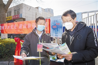3月22日是第二十八个“世界水日”,3月22日至28日是第三十三个“中国水周”。市水利局围绕“坚持节水优先,建设幸福河湖”主题开展宣传活动,依托派驻到无物业小区参加疫情防控值班值守的党员干部,为往来小区居民讲解节水知识,发放节水宣传手册和河长制宣传单页300余份。同时,利用手机短信向市民发送节水宣传口号10万余条,利用网络、电视、报纸等媒体开展宣传,有效增强市民节约用水意识、转变传统用水观念。图为3月22日,市水利局驻新朝阳购物中心居民楼值守人员为社区居民讲解节水知识。